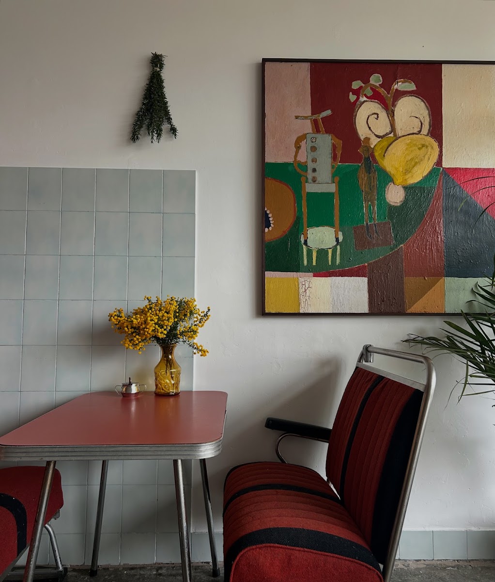 The atmosphere at The Cool Room leans into a relaxed, homey vibe with a touch of creativity and style — think quirky recycled furniture and fresh flowers that complement the adjacent vintage store. It doesn’t feel over-styled or contrived; instead, it’s the kind of spot where the room’s personality grows out of its sustainable approach and welcoming layout.